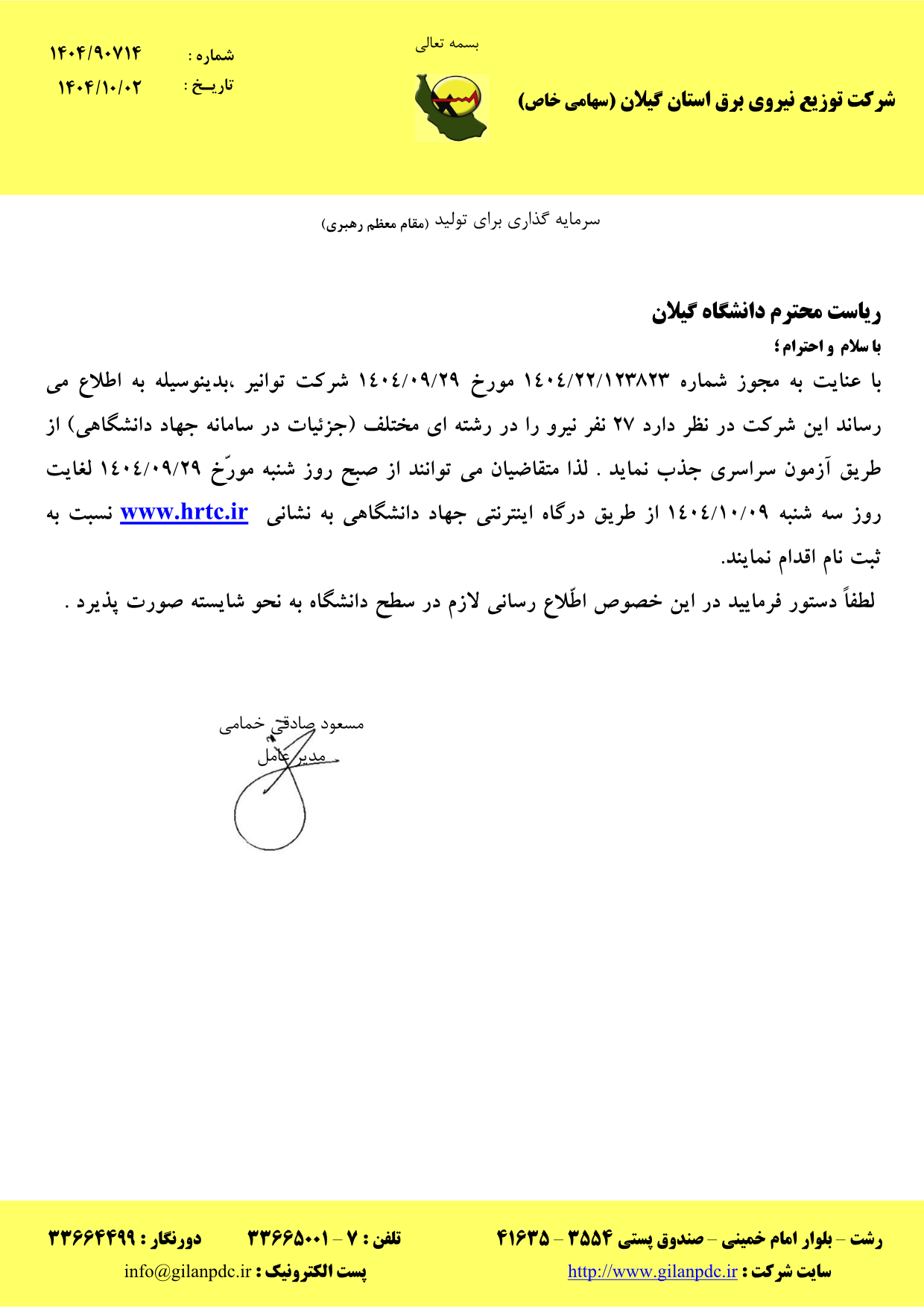 آگهی استخدام شرکت توزیع نیروی برق استان گیلان
